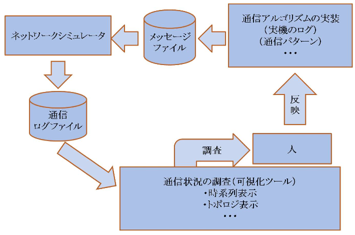 超並列計算機を有効に利用する上で高性能な 通信アルゴリズムは欠かせません.石畑研究室では,アルゴリ ズムの振る舞いを種々の方法で可視化し,高性能のアルゴリズム開発を効率化しようとしています.